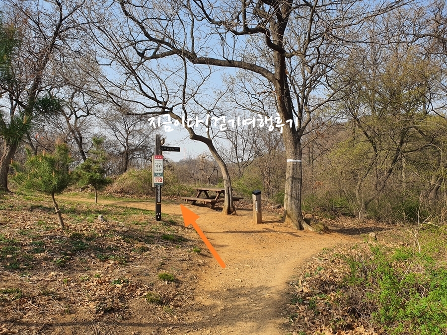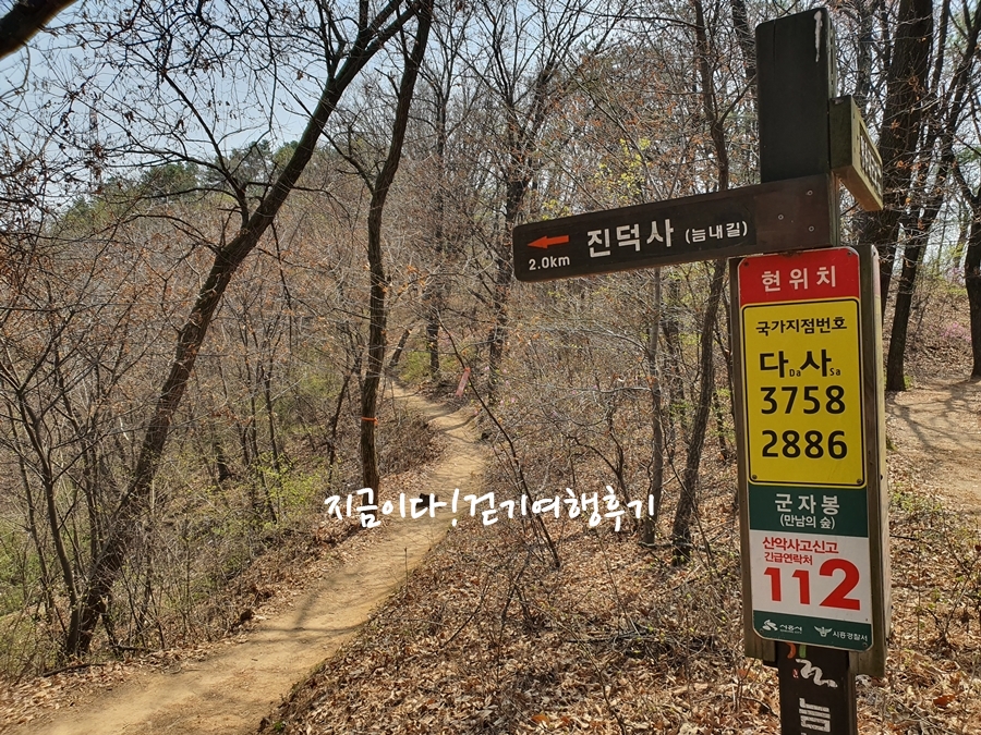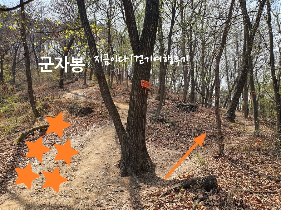 늠내길1코스는 오른쪽으로 가며, 군자봉을 가지 않습니다.
