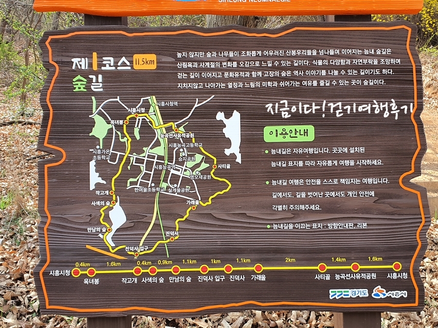 경기 시흥늠내길1코스 숲길(시흥시청-옥녀봉-작고개-사색의숲-진덕사입구-가래울-사티골-능곡선사유적공원-시흥시청)