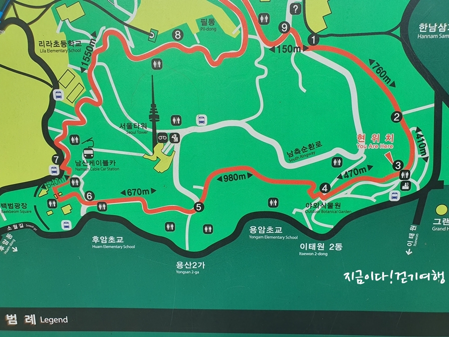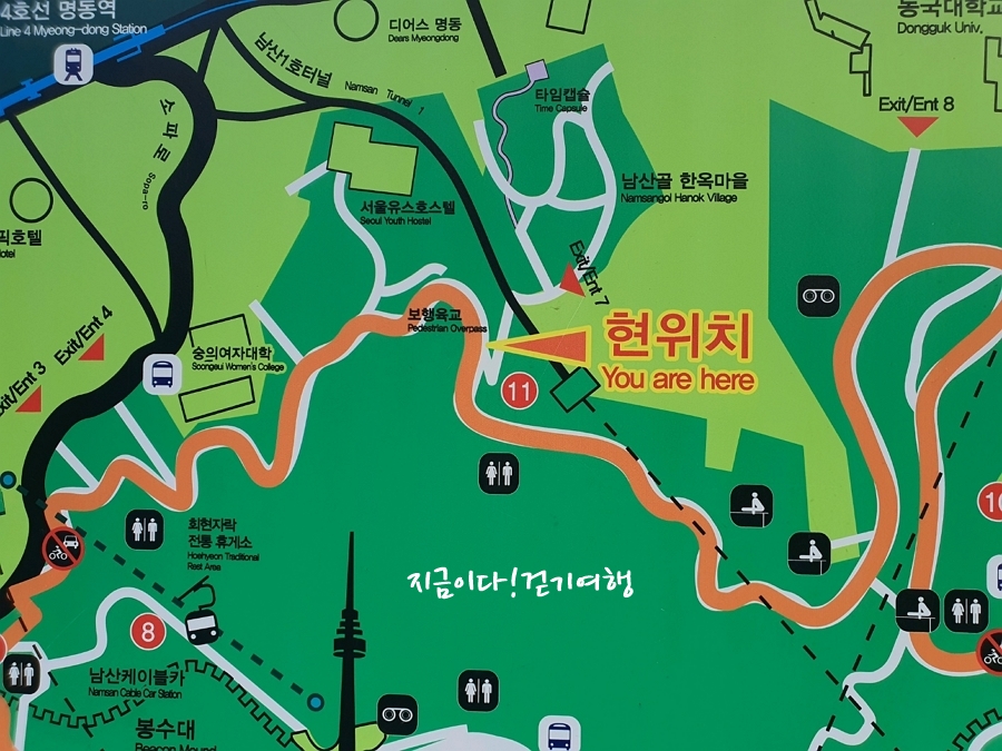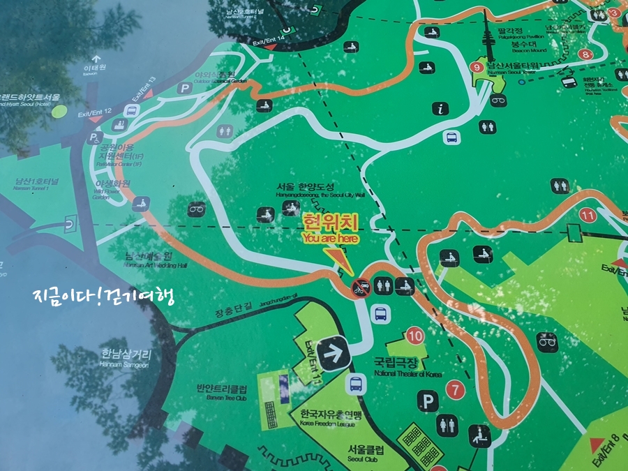 이 위치부터 남산의 숨겨져 있는 멋진 숲길을 즐길 수 있습니다.