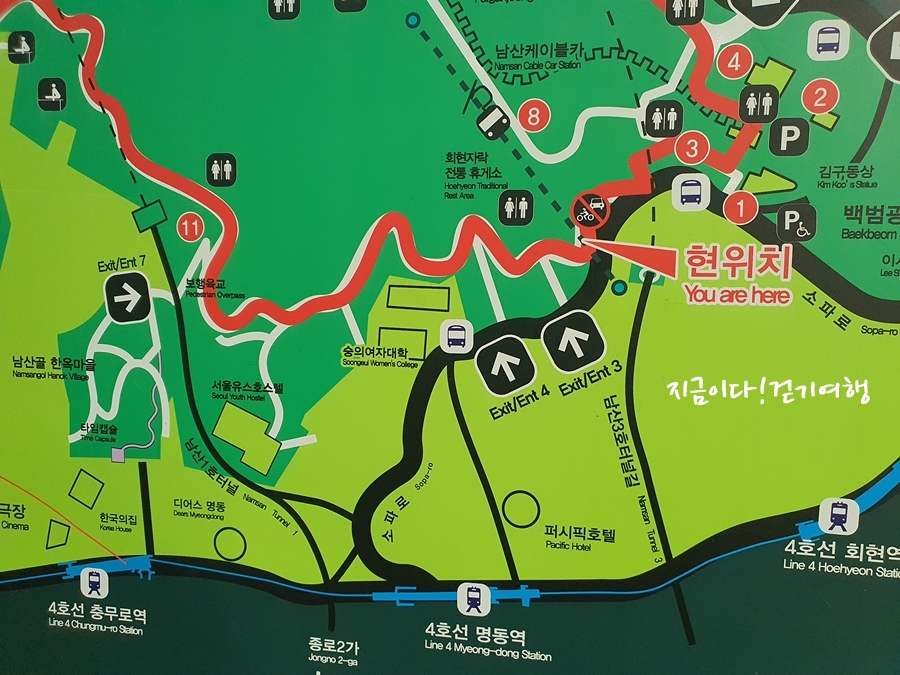 저는 충무로역에서 내려 남산골한옥마을 둘러보고 남산둘레길 연결해서 걸었습니다.